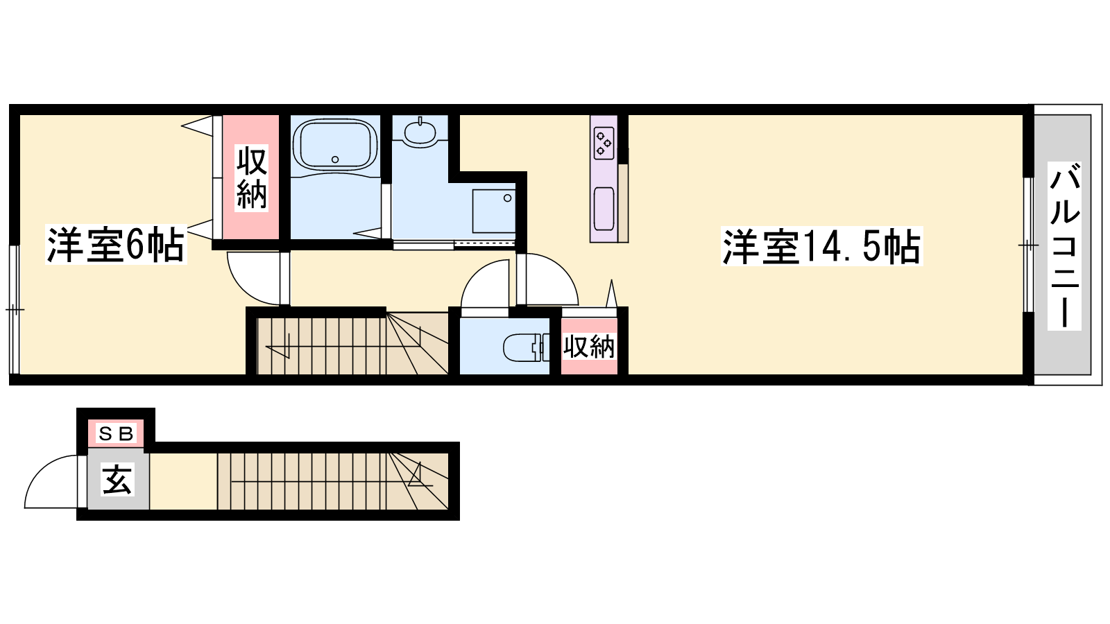- LDK14.5帖、洋室6帖