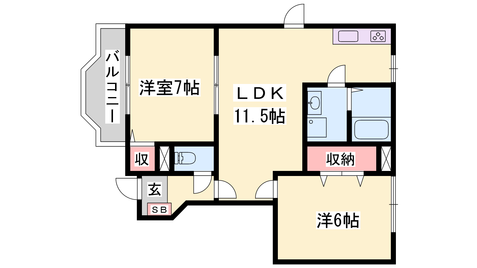 - LDK11.5帖、洋室6帖、洋室6帖