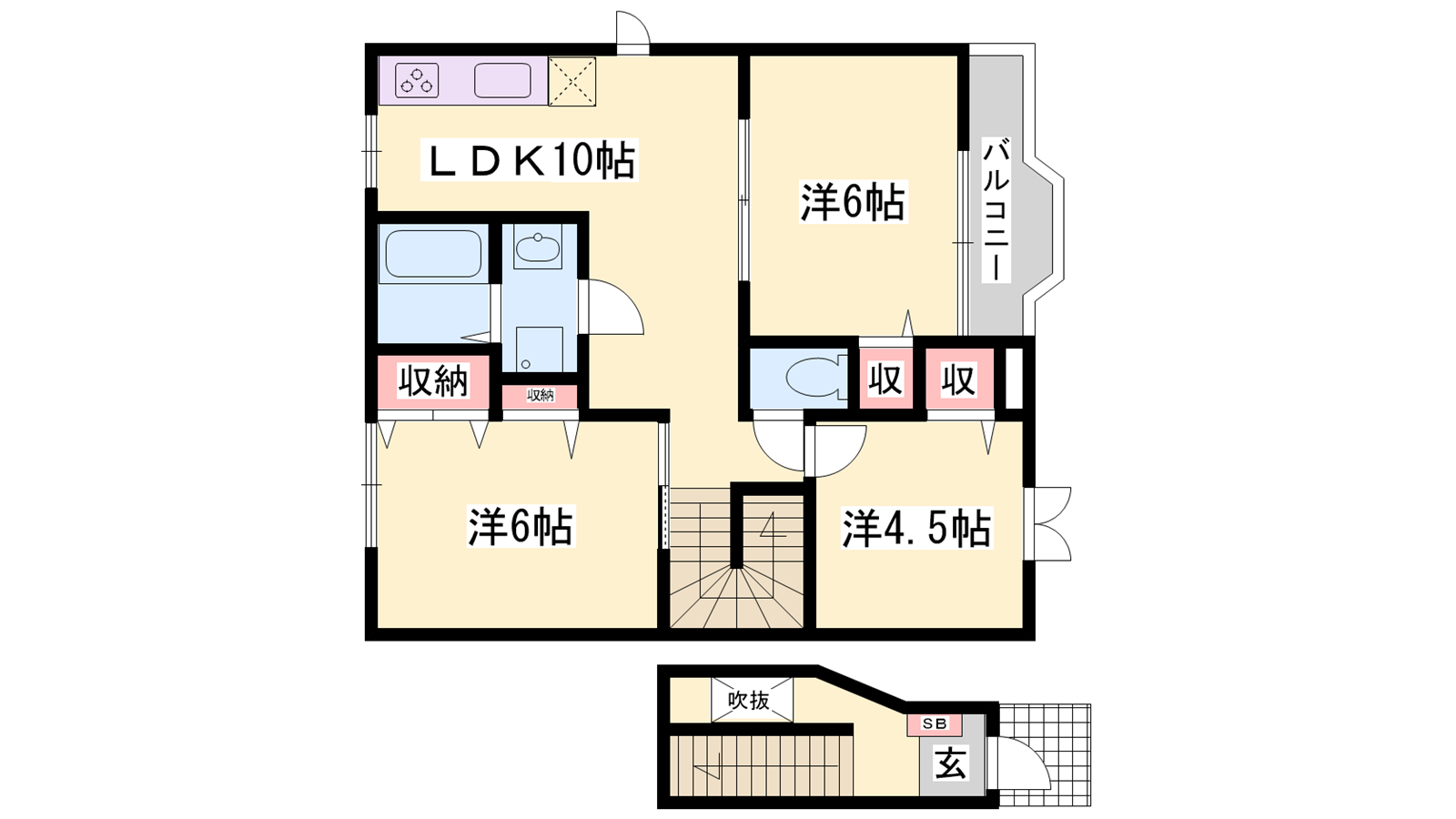 - LDK10帖、洋室6帖、洋室6帖、洋室4.5帖