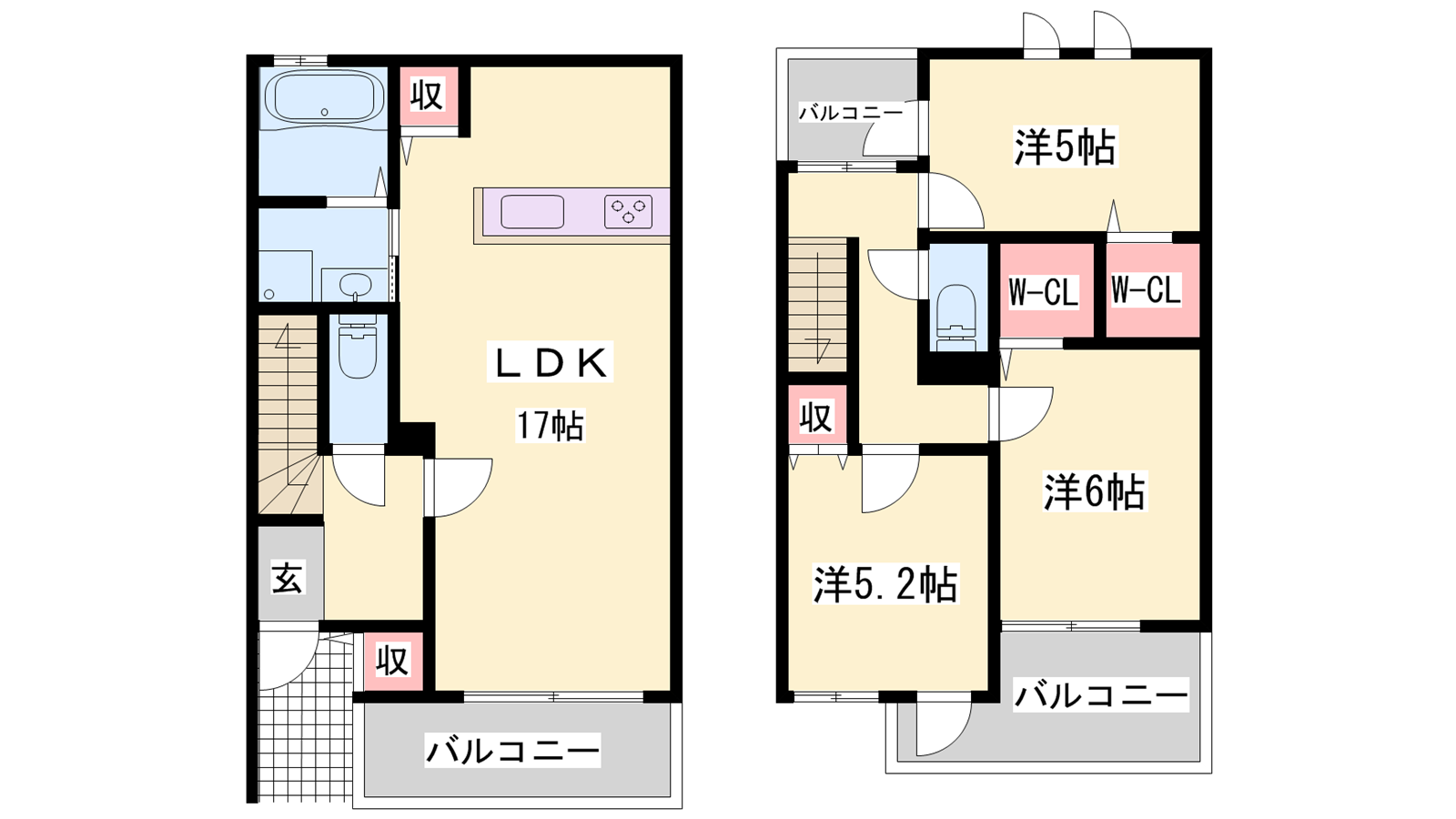- LDK17帖、洋室6帖、洋室5.2帖、洋室5帖