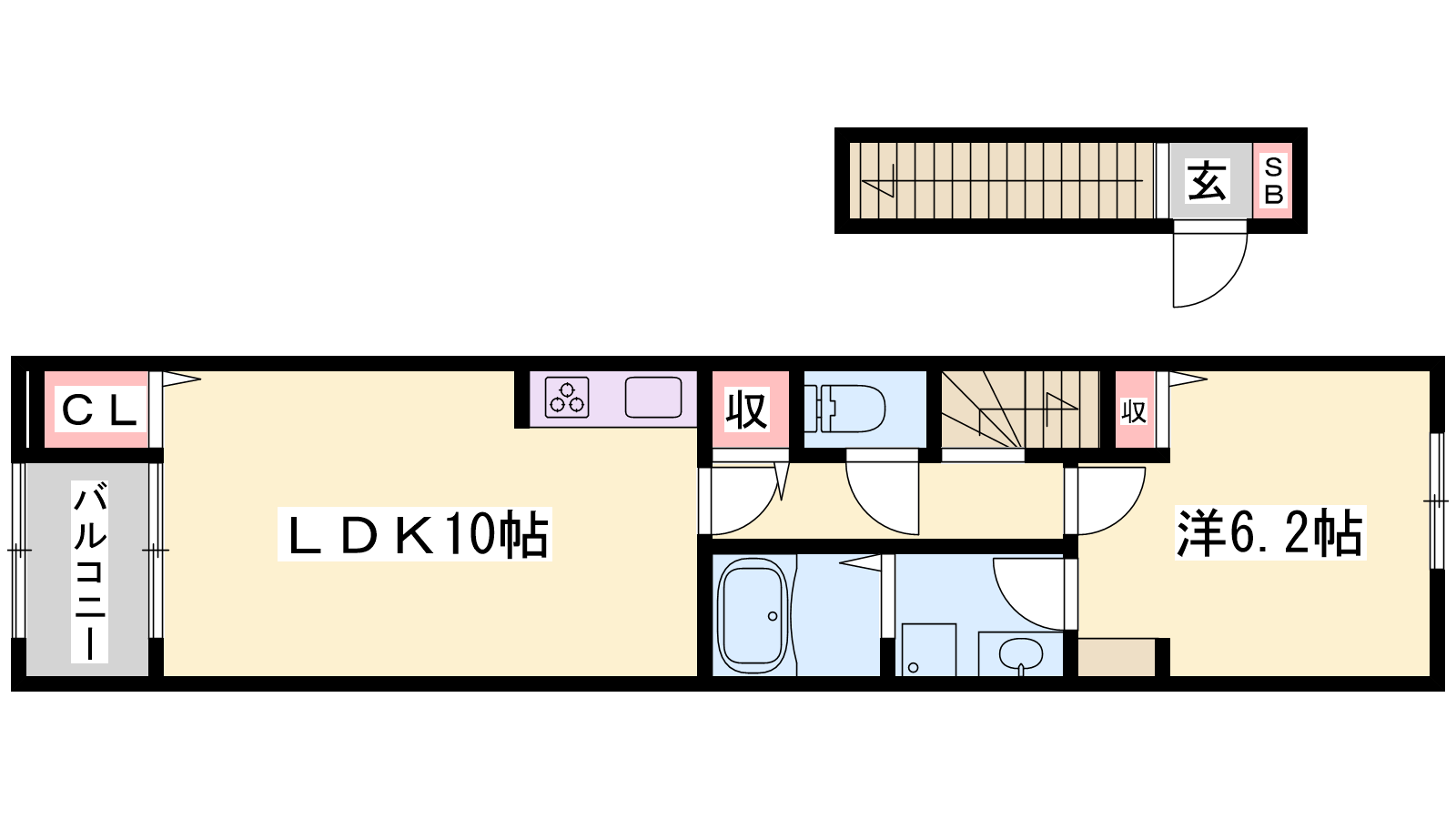- LDK10帖、洋室6.2帖