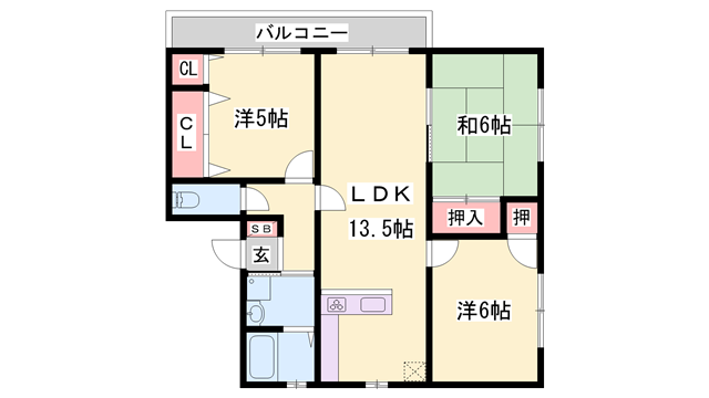 - LDK13.5帖、洋室6帖、洋室5帖、和室6帖