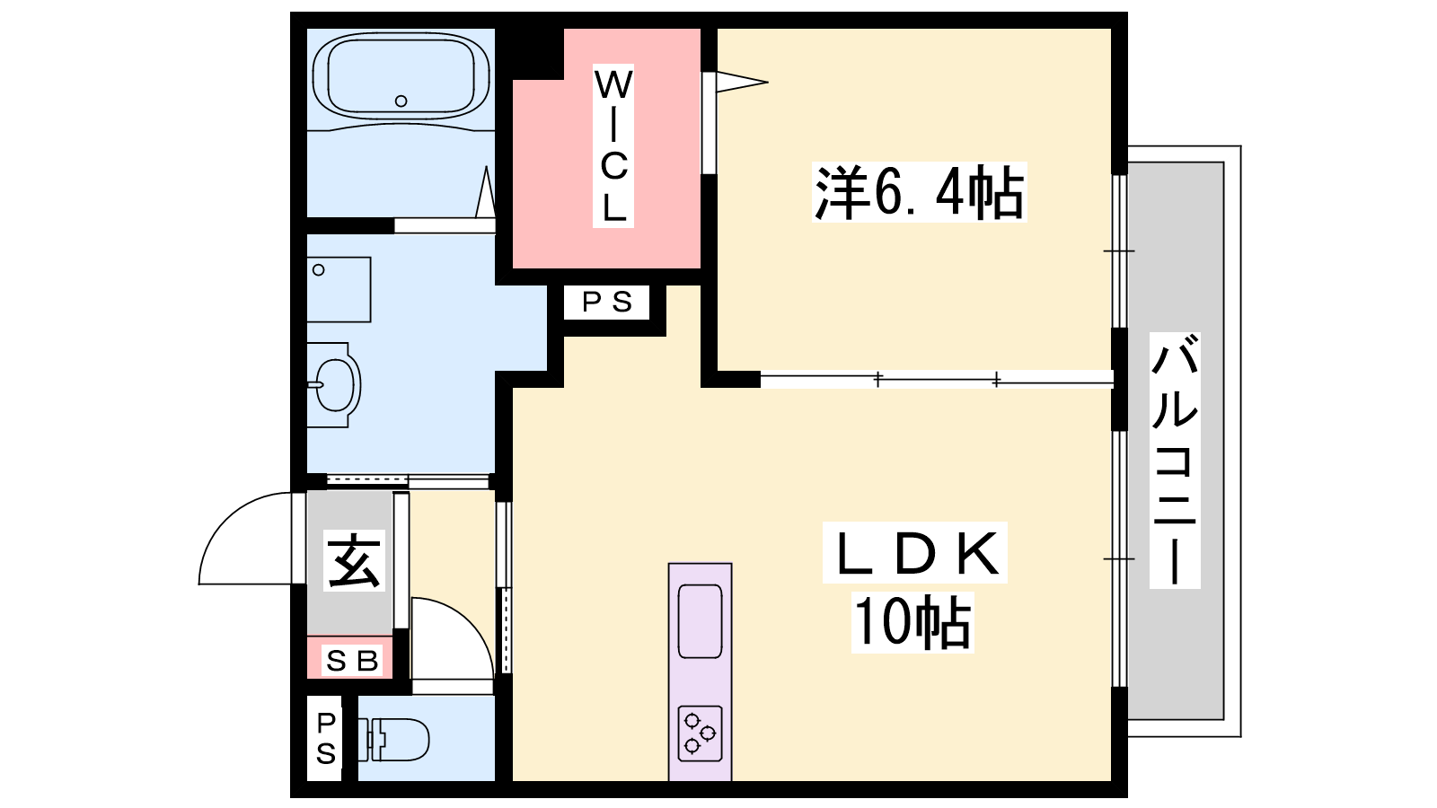 - LDK10帖、洋室6.4帖